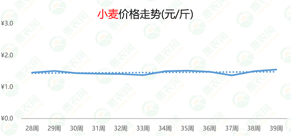 气温逐渐走低,叠加双节消费拉动,牛肉的需求较前期有所增加,行情温和上涨。第39周,牛肉的价格为25.1元/斤,环比、同比分别上涨1%和6%。
