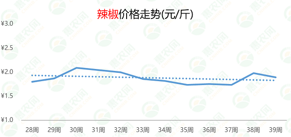 经过上周的短暂上涨后,辣椒的行情再次回落5%至1.9元/斤;而与去年同期相比,今年辣椒的行情相对要好一些,上涨6%。