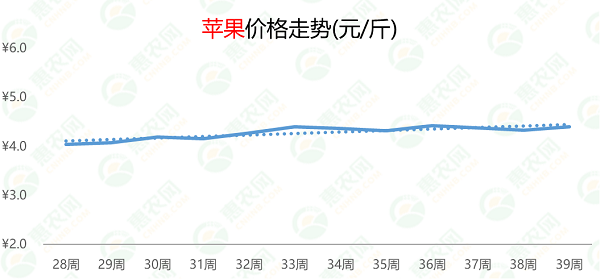 苹果市场热度上升,价格也随之温和上涨。本周,苹果的周均价为4.4元/斤,环比、同比纷纷上涨,涨幅分别为2%和12%。