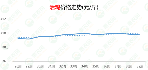 当前,活鸡市场供应充足,但需求平平,价格继续下跌。本周,活鸡的周均价为9.8元/斤,环比下跌1%,但同比上涨17%。