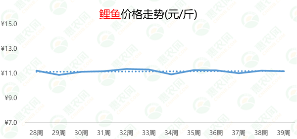 近期,鲤鱼的市场价格基本稳定,未出现大范围波动。本周,鲤鱼的周均价为11.2元每斤,与上周相比,价格基本持平;与去年同期相比,上涨10%。