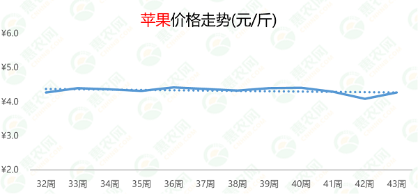 目前,市场对苹果的需求强劲,带动价格上涨。本周,苹果的价格环比上涨5%至4.3元/斤,同比涨幅为10%。