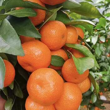 砂糖橘,又名十月桔,原产广东四会。其果实扁圆形,顶部有瘤状突起,蒂脐端凹陷,色泽橙黄,果形指数0.78,单果重62-86克,可食率71%,可溶性固形物含量11%,每100毫升含全糖10.55克,果酸0.35克。果皮薄,易剥离,果肉爽脆、汁多、化渣,口感细腻,耐人寻味,因其味甜如沙糖而名,实为橘子中的极品。