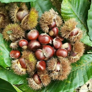 入秋以来,钦州市灵山县平南镇塘肚村的满山遍岭,随处可见枝繁叶茂的板栗树林,一颗颗硕大饱满的板栗果挂在枝头,一片丰收在望的喜人景象。平南镇盛产板栗历史已久,今年,该镇投产板栗面积5000多亩,预计产量85万公斤,产值约800万元。