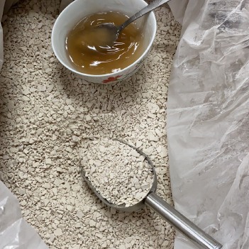取少量的藕粉放入口中,触及唾液即会很快溶化,而其他淀粉入口后,不仅不易溶化,而且还会粘糊在一起或呈团状。