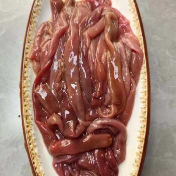 8、直至海肠的手感摸起来和看起来都是干净的,并且清洗过海肠的水是透明的就代表海肠洗干净了。