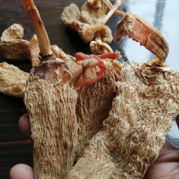2.清洗:将干天麻放入清水中,用手轻轻揉搓,洗去表面的灰尘和杂质。